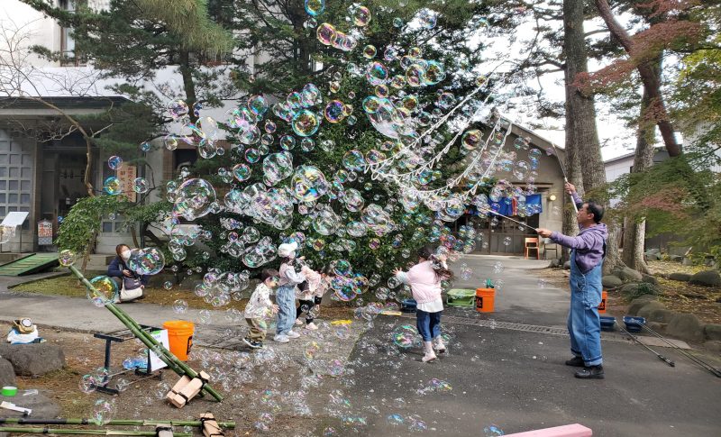 また、施設の外では、しゃぼん玉アーティスト・森のくまさんによるパフォーマンスが行われ、訪れた方々の笑顔があふれる空間となっていました。